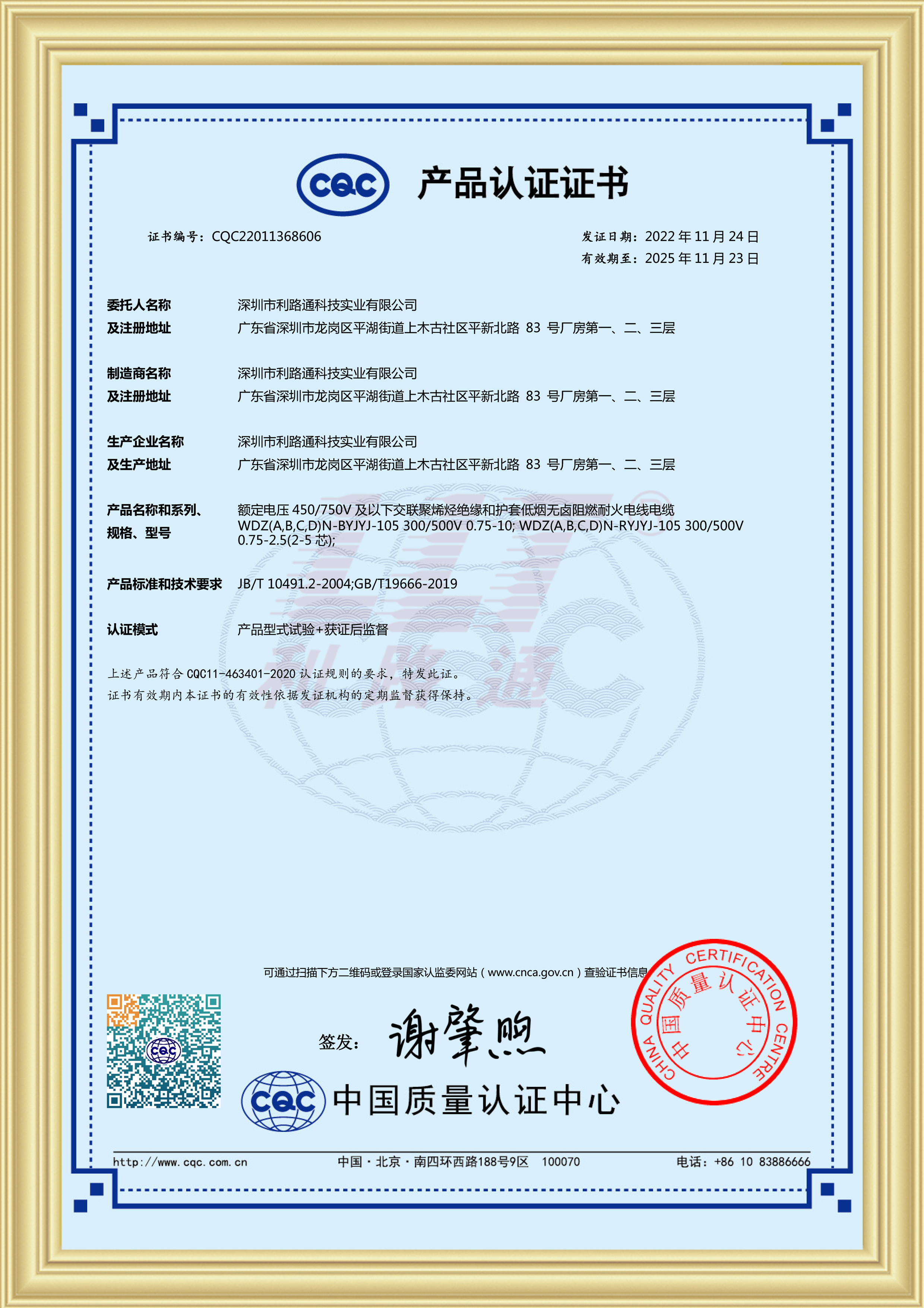 低烟无卤阻燃耐火电缆(CQC认证)